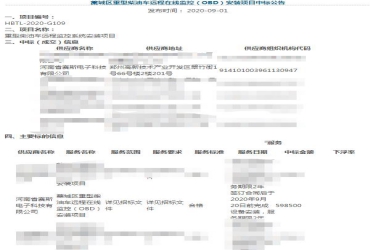 2020年12月30日,商丘市政府采购中心受商丘市生态环境局的委托,就“重型柴油货车在线监控OBD安装”项目进行公开招标采购,我公司一举中标。此次投标项目,公司领导十分重视,对投标文件、...