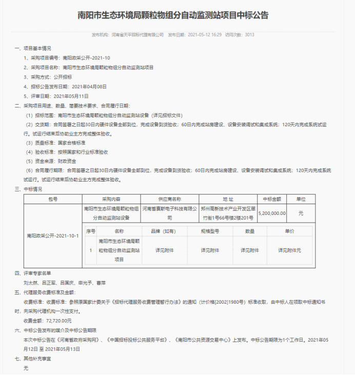 2020年9月10日,石家庄市生态环境局平山县分局远程在线监控项目发布了中标通知,经过与几家实力雄厚的公司激烈竞标,河南赛斯电子科技有限公司脱颖而出!凭借着良好的信誉、丰富的行业经验、强大的技术实力...